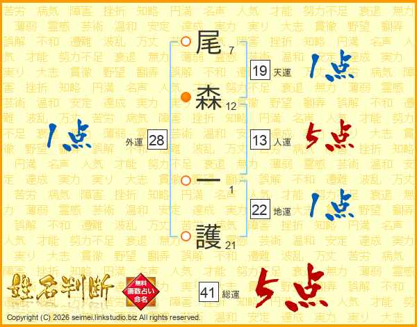 尾森一護さんの総運は41画の5点!
