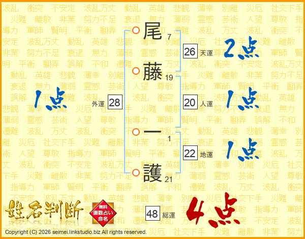尾藤一護さんの総運は48画の4点!