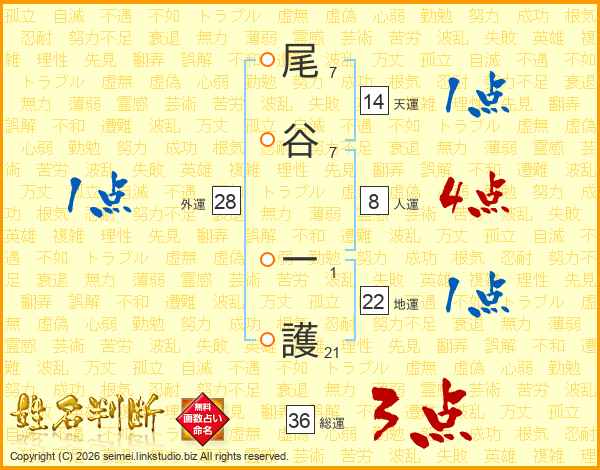 尾谷一護さんの天運は14画の1点!