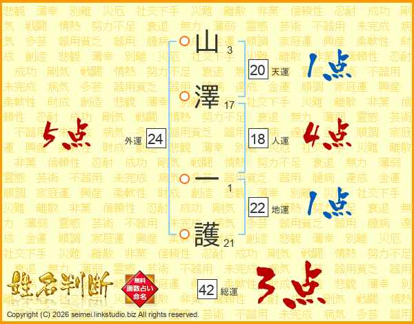 山澤一護さんの総運は42画の3点!