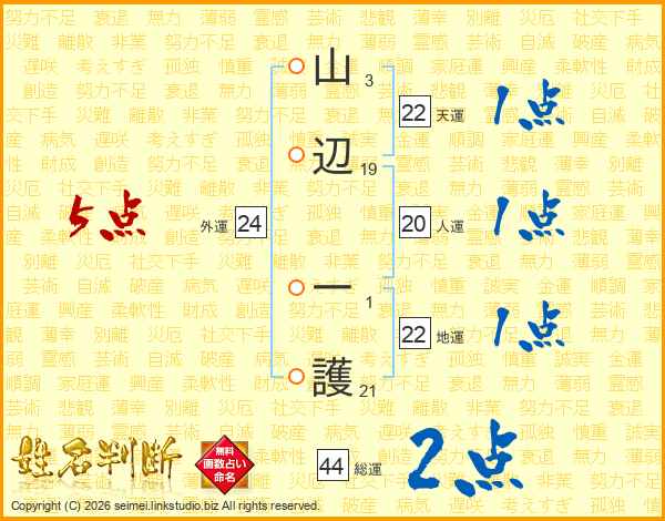山辺一護さんの総運は44画の2点!