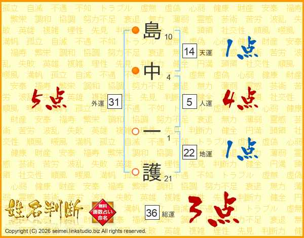 島中一護さんの天運は14画の1点!