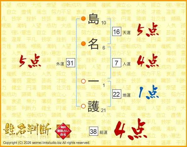 島名一護さんの総運は38画の4点!