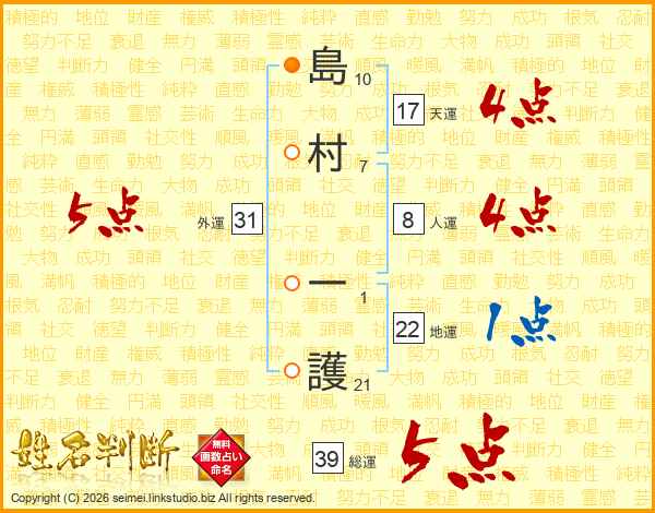 島村一護さんの総運は39画の5点!