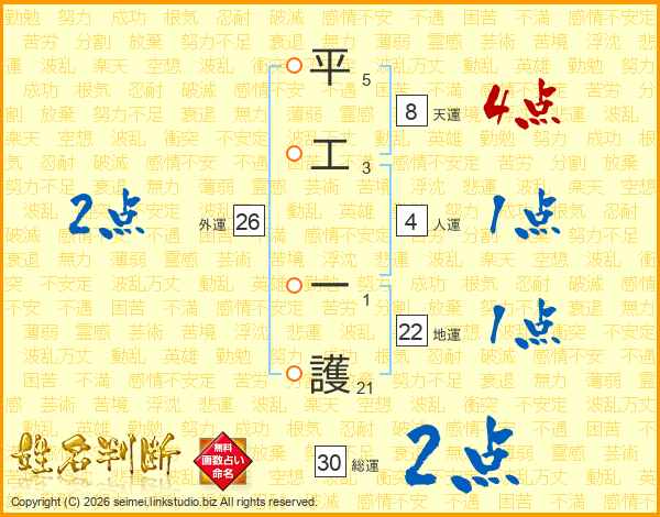 平工一護さんの外運は26画の2点!