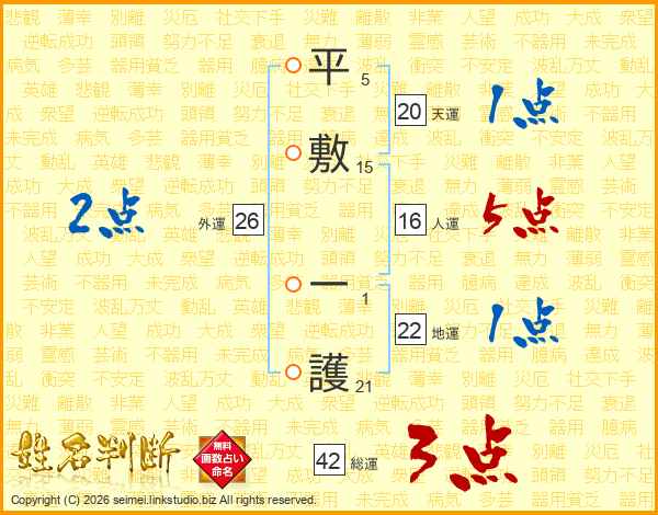 平敷一護さんの総運は42画の3点!