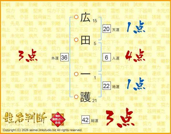 広田一護さんの総運は42画の3点!