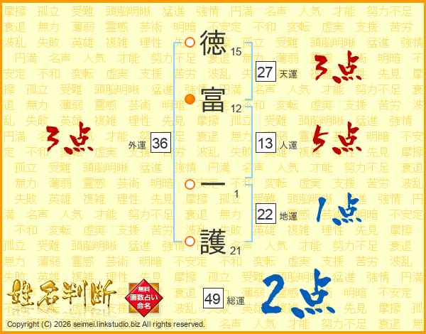 徳富一護さんの外運は36画の3点!