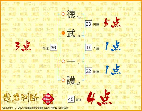 徳武一護さんの総運は45画の4点!