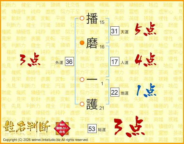 播磨一護さんの総運は53画の3点!