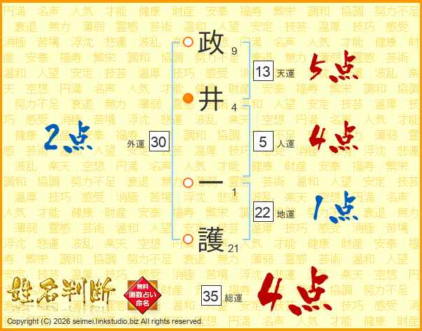 政井一護さんの総運は35画の4点!