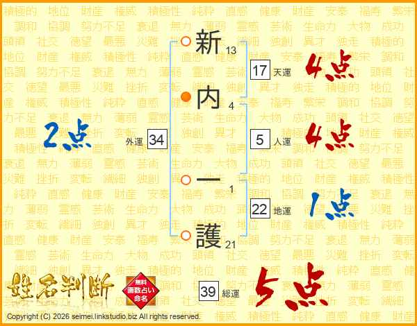 新内一護さんの総運は39画の5点!