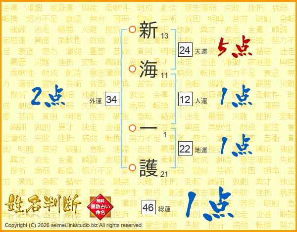 新海一護さんの外運は34画の2点!
