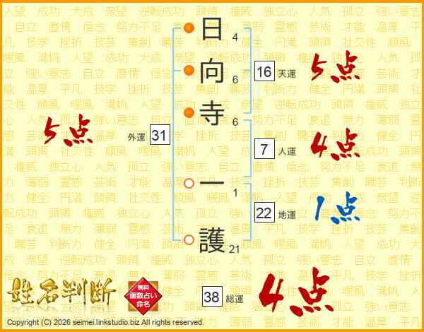 日(4画)向(6画)寺(6画) 一(1画)護(21画)