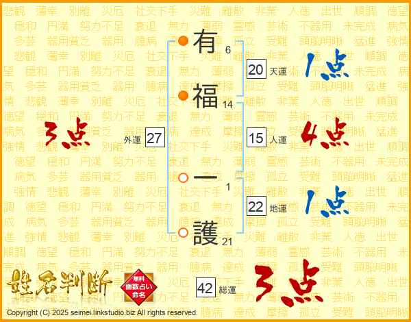 有福一護さんの総運は42画の3点!