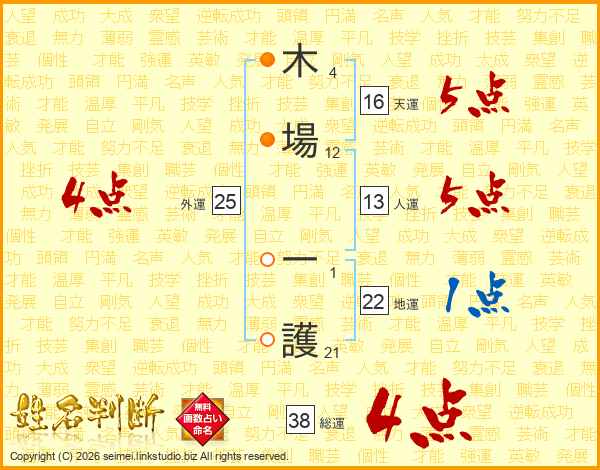 木場一護さんの総運は38画の4点!