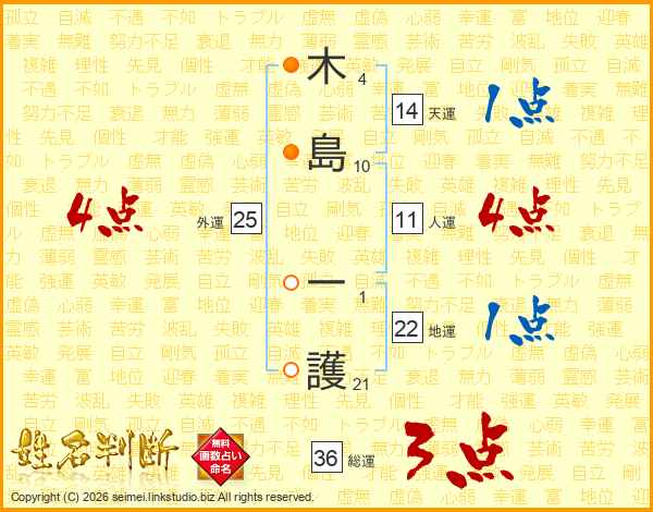 木島一護さんの天運は14画の1点!