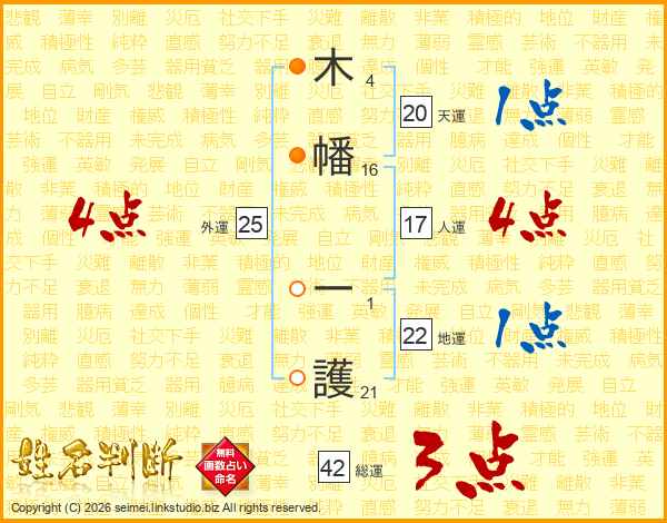 木幡一護さんの総運は42画の3点!