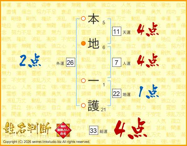 本地一護さんの総運は33画の4点!