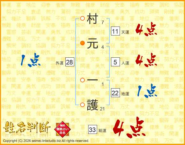 村元一護さんの総運は33画の4点!