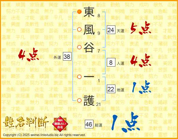 東風谷一護さんの外運は38画の4点!