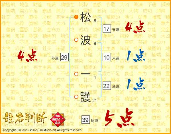 松波一護さんの総運は39画の5点!