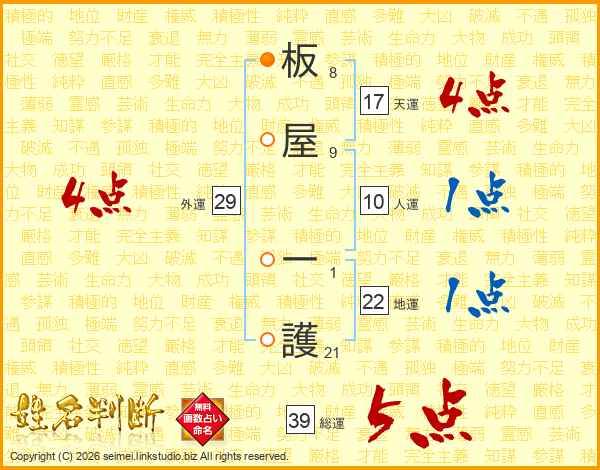 板屋一護さんの総運は39画の5点!