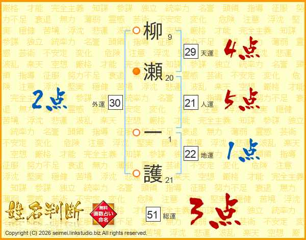 柳瀬一護さんの総運は51画の3点!