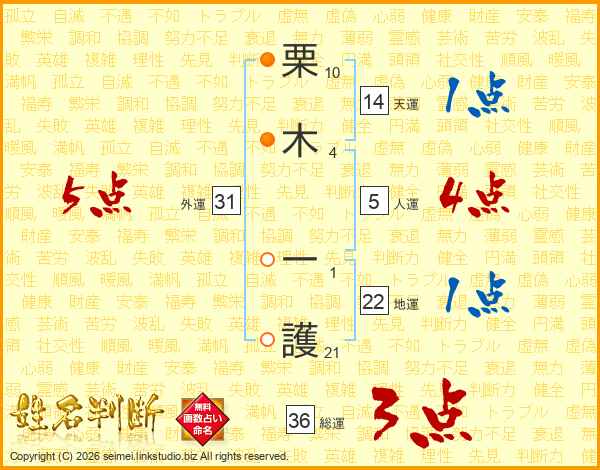 栗木一護さんの外運は31画の5点!