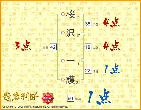 桜沢一護さんの外運は42画の3点!