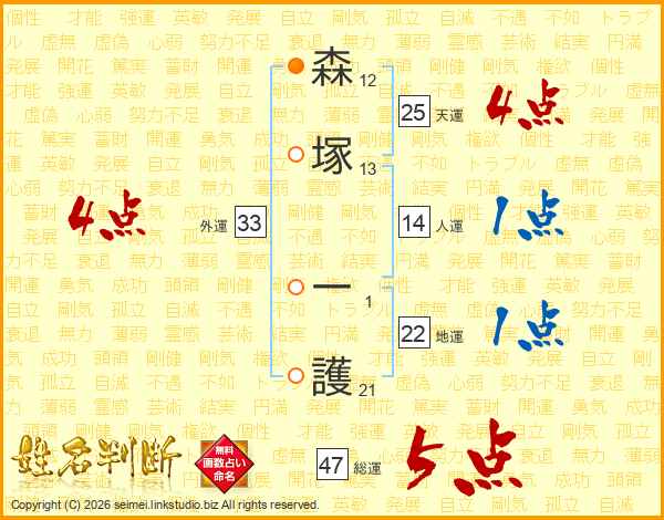 森塚一護さんの総運は47画の5点!