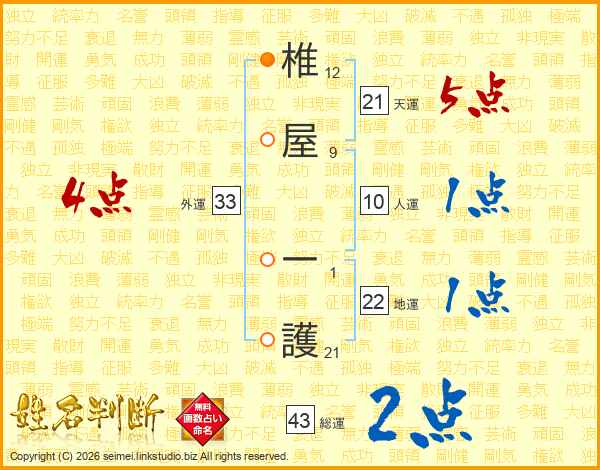 椎屋一護さんの外運は33画の4点!