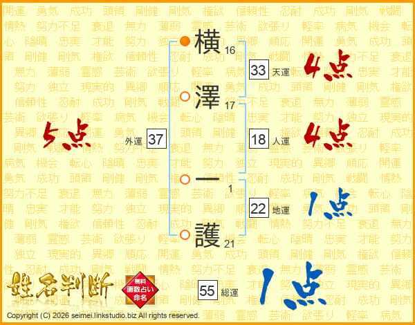 横澤一護さんの総運は55画の1点!
