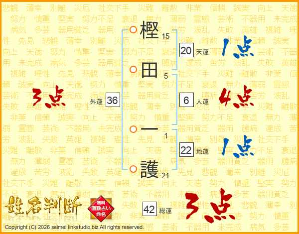 樫田一護さんの総運は42画の3点!
