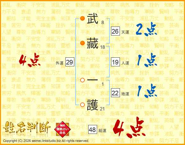 武藏一護さんの総運は48画の4点!