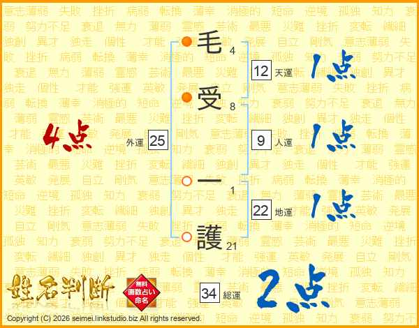 毛受一護さんの総運は34画の2点!