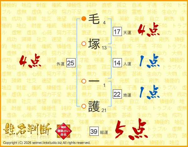 毛塚一護さんの総運は39画の5点!