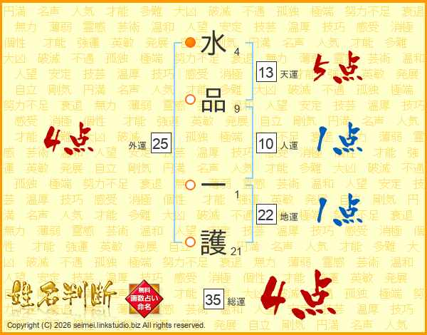 水品一護さんの総運は35画の4点!