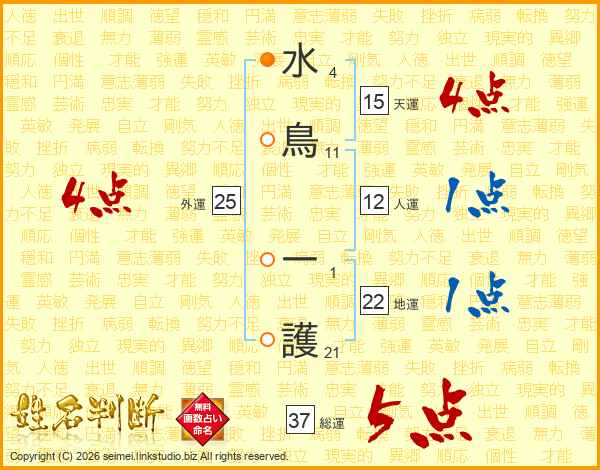 水鳥一護さんの総運は37画の5点!