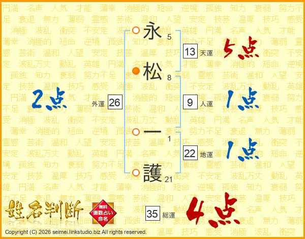 永松一護さんの外運は26画の2点!