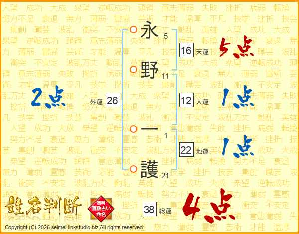 永野一護さんの総運は38画の4点!