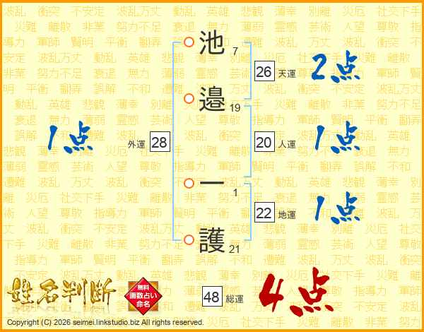 池邉一護さんの総運は48画の4点!