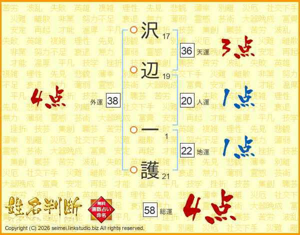 沢辺一護さんの外運は38画の4点!