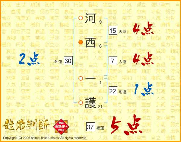 河西一護さんの総運は37画の5点!