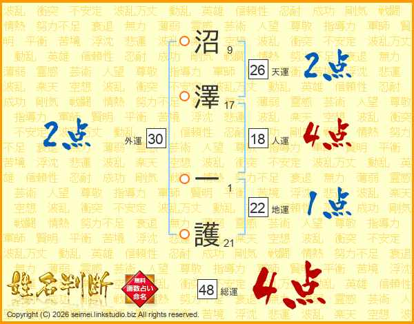 沼澤一護さんの天運は26画の2点!