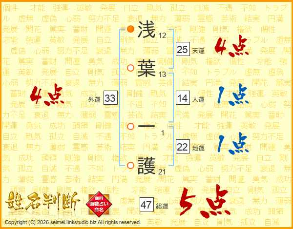浅葉一護さんの総運は47画の5点!