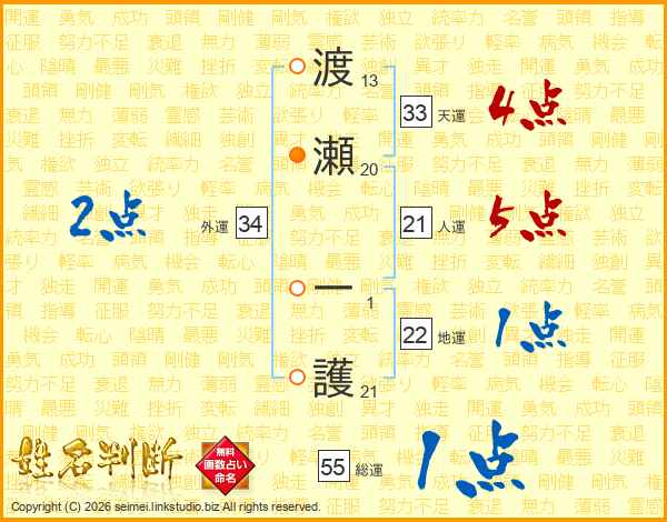 渡瀬一護さんの総運は55画の1点!