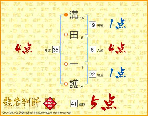 溝田一護さんの総運は41画の5点!