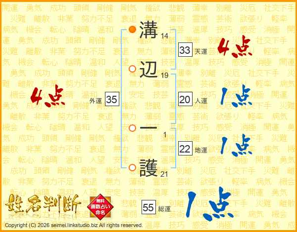 溝辺一護さんの総運は55画の1点!