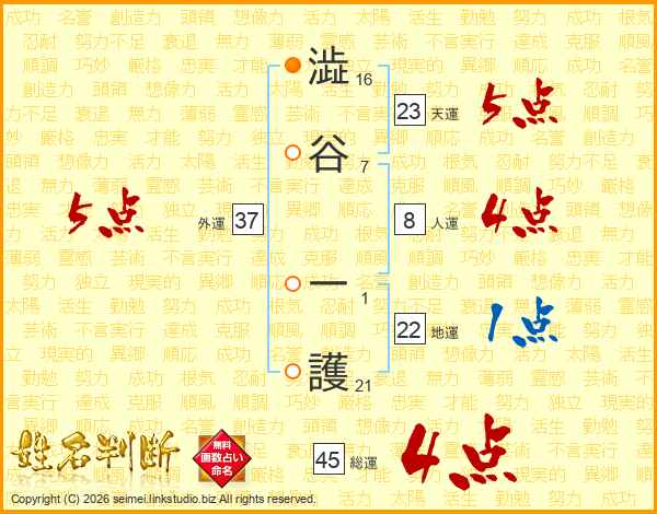 澁谷一護さんの総運は45画の4点!